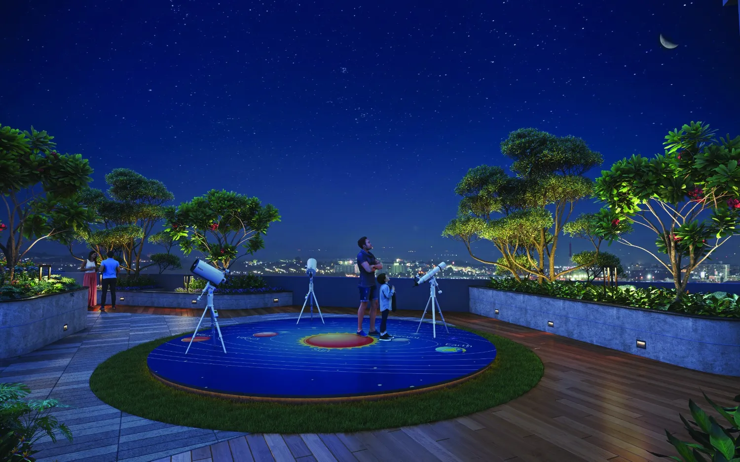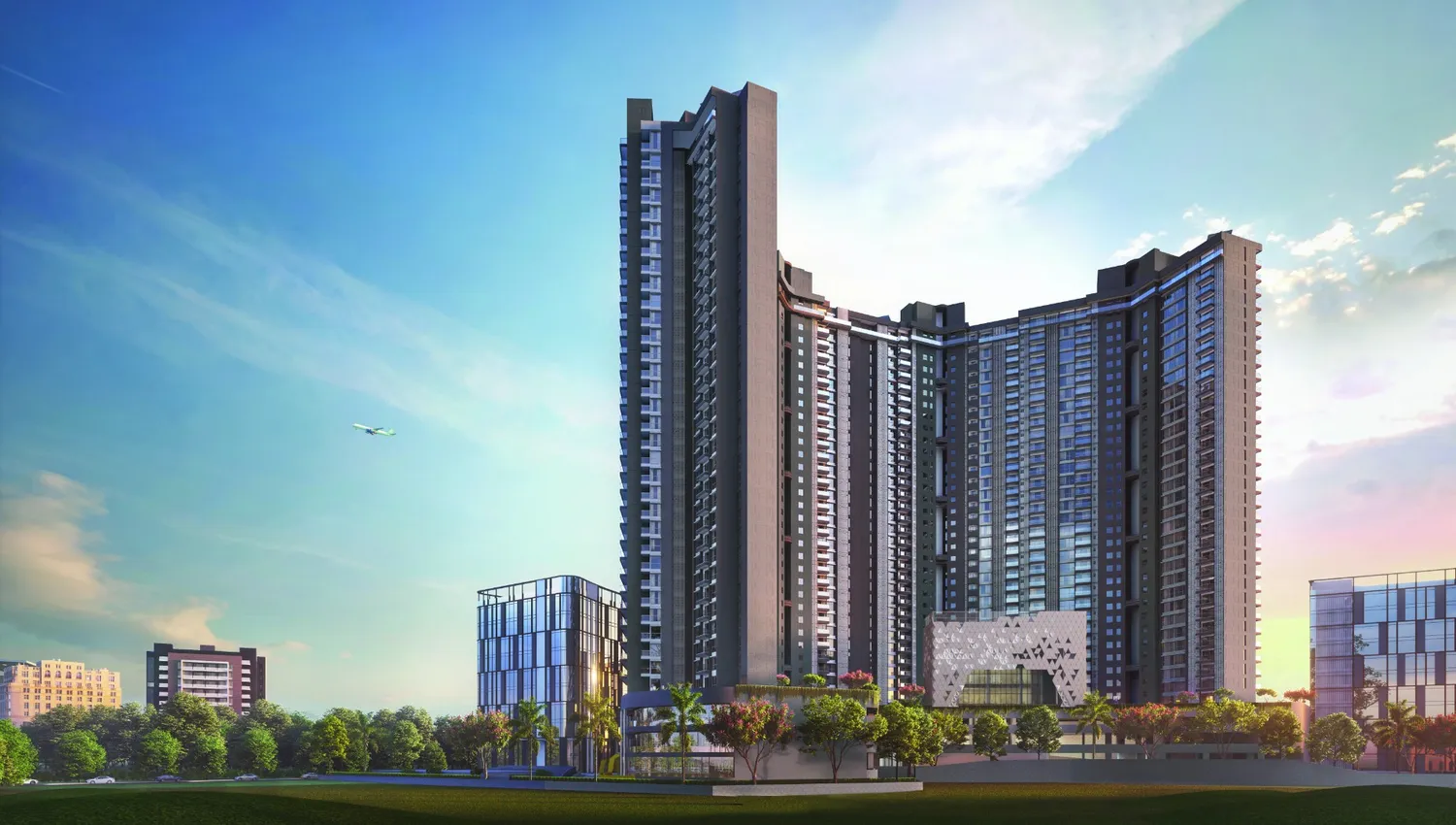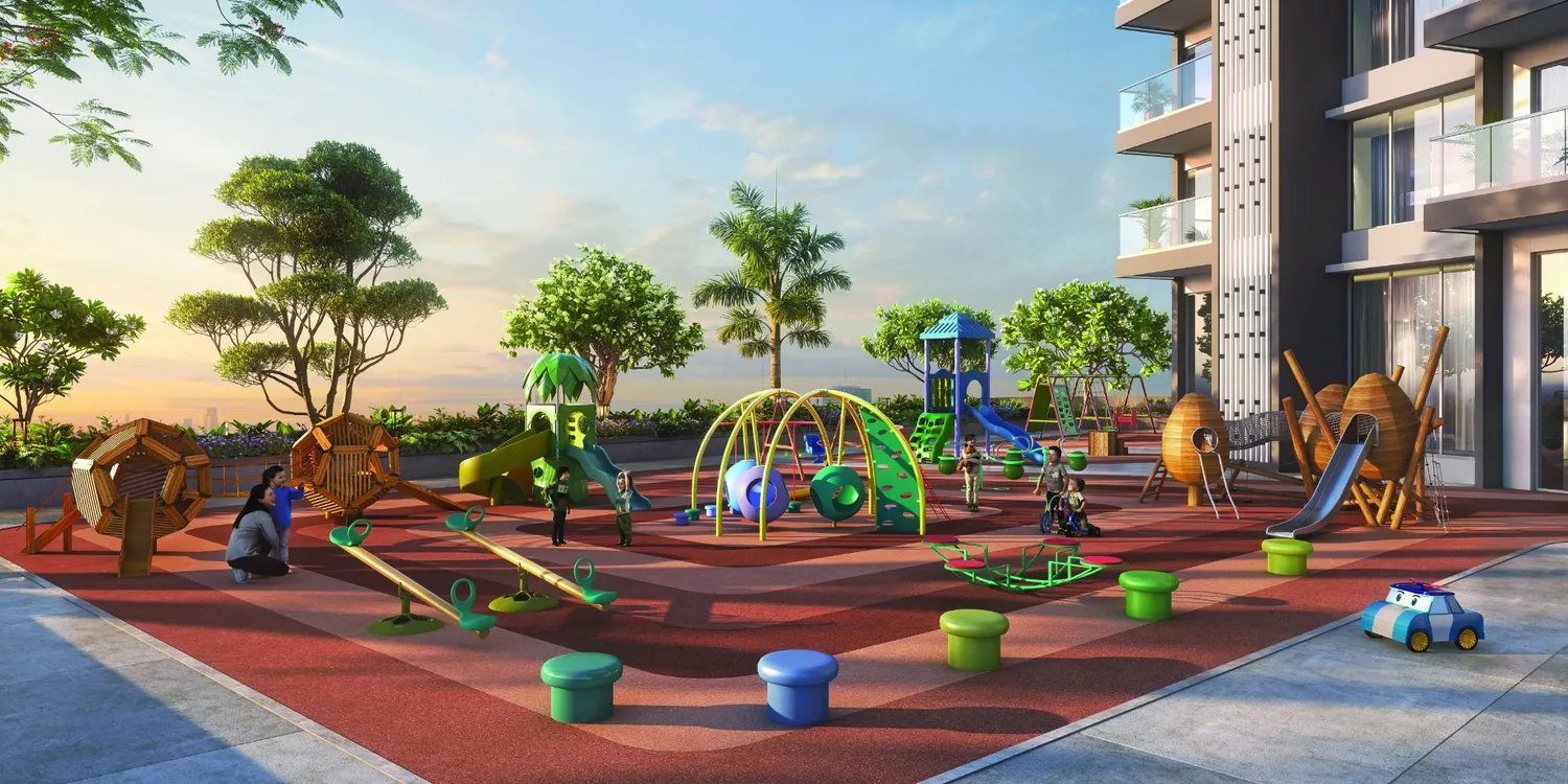 Landscaped green zones with kids’ play area, seniors’ lounge